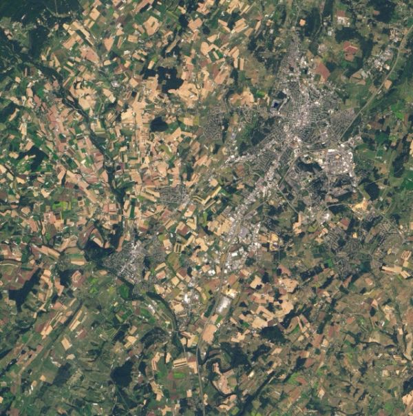 陆地卫星8号上的陆地成像仪(OLI)拍摄了一张自然色照片,恒达网址多少展示了其中一座火山。在弗吉尼亚州哈里森堡以西,私人所有、绿树成荫的鼹鼠山(Mole Hill)高出起伏的农田只有几百英尺。